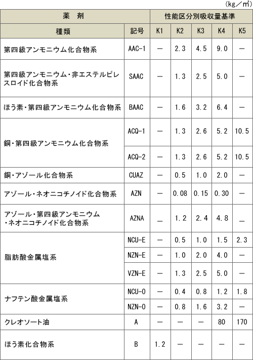 表9 薬剤及び記号並びに性能区分別吸収量基準